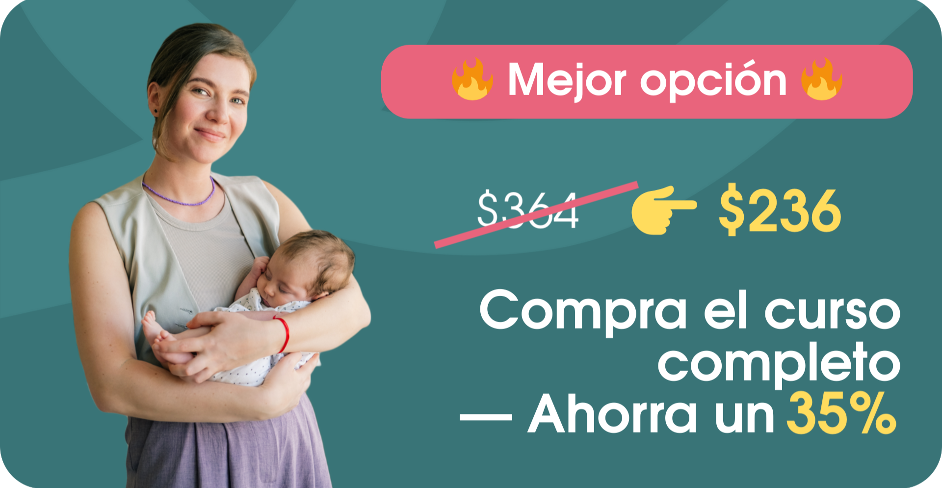 Este curso está diseñado para mejorar la calidad de vida de toda tu familia, sin sobrecargarte a ti ni a tu bebé.